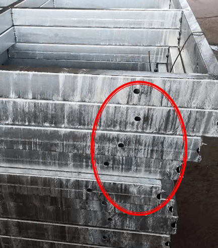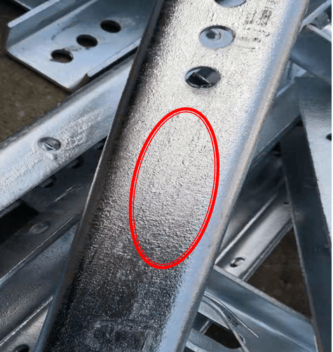 3.起吊速度過(guò)快,造成上層工件的余鋅流到下一層的表面。
