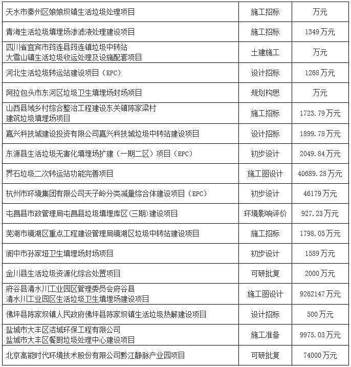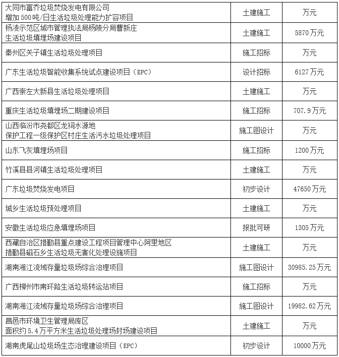2019年1月份全國(guó)擬在建垃圾處理項(xiàng)目,詳情如下: