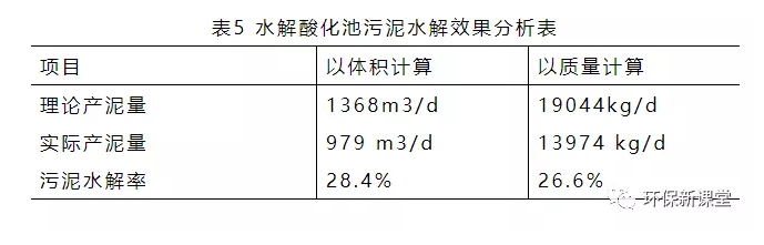 (4) 水解酸化池在截留大量懸浮物和去除部分BOD5的同時,對污泥還有一定的水解率[5],通過某水務(wù)某污水處理廠長時間的運行發(fā)現(xiàn),水解酸化池理論產(chǎn)泥量在19044kg/d,而實際處理泥量在13974kg/d,根據(jù)計算污泥水解率約在26.6%;以體積計算,污泥水解率在28.4%,減輕了脫水機的運行負(fù)荷,同時降低了運行費用,由此可以看出水解酸化池57.62%的COD去除率,其中一部分通過剩余污泥進(jìn)行排放,其他可能通過硫酸鹽還原、氫氣的產(chǎn)生等途徑降解。