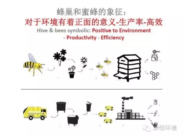 蜂巢狀玻璃幕墻的設(shè)計(jì)靈感來(lái)源于蜜蜂把花粉釀蜜的過(guò)程。設(shè)計(jì)師把每天奔波在城市中的眾多垃圾回收車(chē)輛比喻蜜蜂收集花粉的過(guò)程,把生活垃圾焚燒發(fā)電廠比喻蜂巢,將收集的生活垃圾在焚燒發(fā)電廠變成清潔能源的過(guò)程比喻蜜蜂釀蜜,非常形象的展現(xiàn)了康恒寧波鄞州垃圾焚燒發(fā)電廠的建造理念。