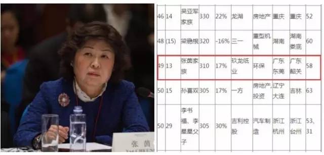 第49位 玖龍紙業(yè) 張茵家族 310億元