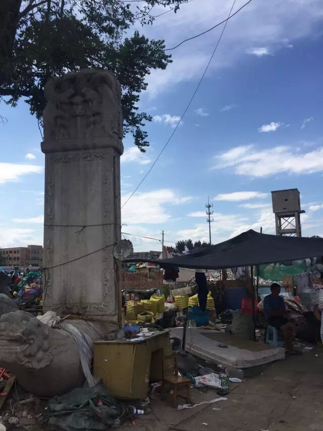 7. 廢品回收站什么寶貝都有。在京北以回收站內(nèi),甚至存有一康熙十四年(1676)立螭首龜趺碑,碑文內(nèi)容涉及清初高級武將圖海家事以及清史重要事件。這塊康熙諭祭墓碑旁邊是一個回收玻璃的攤位。