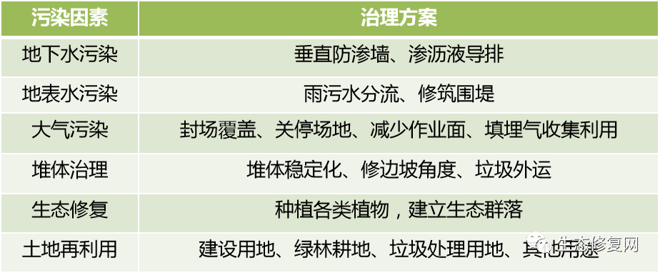 ? 可根據(jù)污染現(xiàn)狀、環(huán)境容量、投資、陳垃圾治理方式等制定治理方案