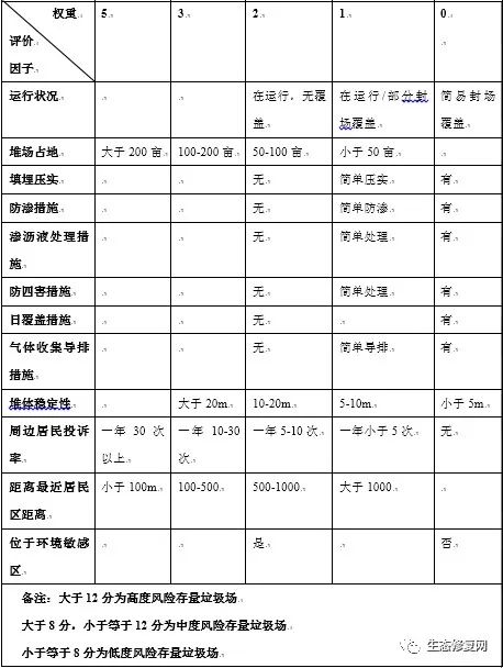 綜合評估,按照不同的檔次確定各存量垃圾場的風(fēng)險等級