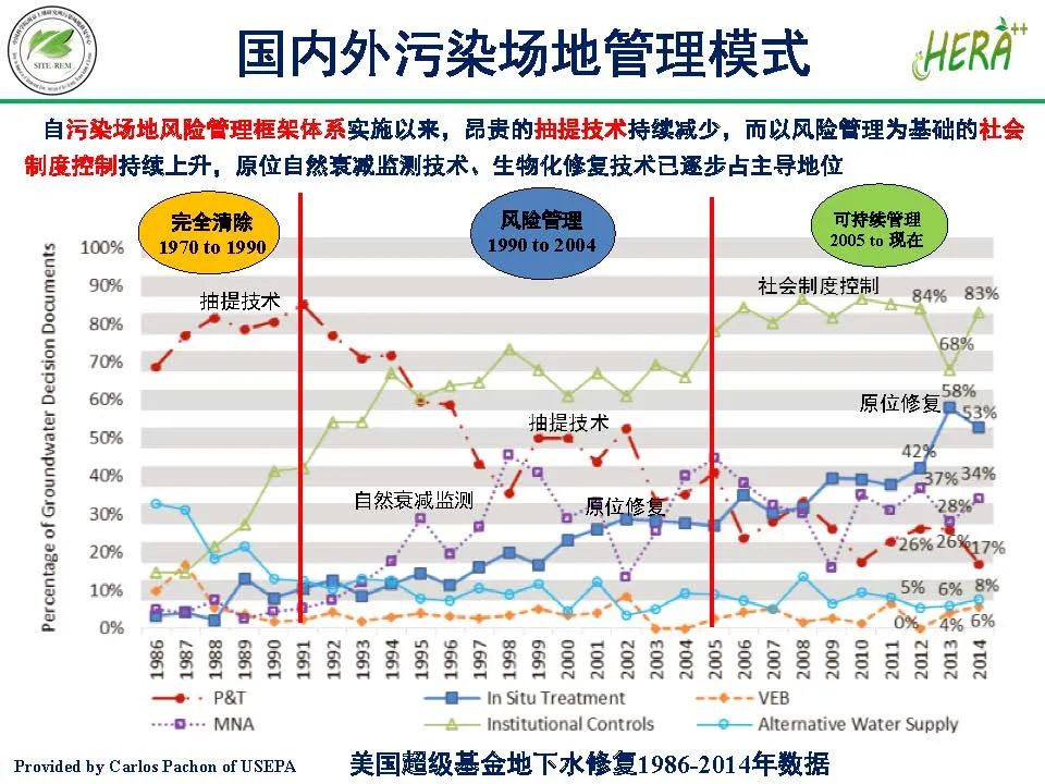 我國自污染場地風險管理框架體系實施以來,昂貴的抽提技術(shù)持續(xù)減少,而以風險管理為基礎(chǔ)的社會制度控制持續(xù)上升,原位自然衰減監(jiān)測技術(shù),生物化修復(fù)技術(shù)已逐步占主導地位。本文從專家視角綜述了場地土壤與地下水污染風險管控技術(shù)。