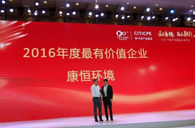 本屆年會以“追求卓越、贏在執(zhí)行” 為主題,中信產(chǎn)業(yè)基金董事長劉樂飛、總裁田宇分別發(fā)表主旨演講??岛悱h(huán)境董事長兼CEO龍吉生博士發(fā)表獲獎感言時表示 : "我很榮幸代表康恒環(huán)境領(lǐng)取‘2016年度最有價值企業(yè)’獎,這個榮譽,我將獻(xiàn)給康恒環(huán)境的管理團(tuán)隊和所有康恒環(huán)境的員工,感謝所有支持康恒環(huán)境的中信產(chǎn)業(yè)基金的領(lǐng)導(dǎo),未來,康恒環(huán)境將秉承‘誠信、勤儉,敬業(yè)、責(zé)任,團(tuán)隊、創(chuàng)新’的企業(yè)價值觀,牢記創(chuàng)造‘更潔凈更友好的生活環(huán)境’的企業(yè)使命,早日將康恒環(huán)境打造為 '跨世紀(jì)的全球城市固廢綜合治理行業(yè)領(lǐng)跑者' ”。