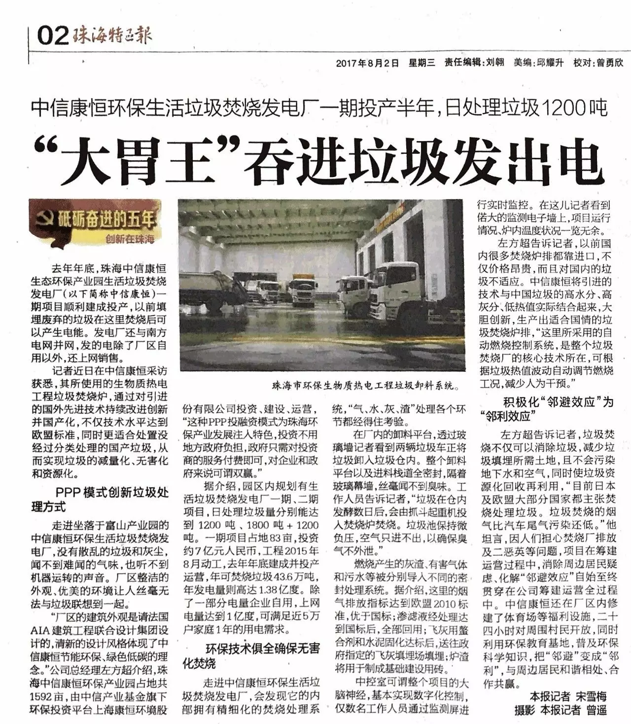近日,《珠海特區(qū)報》專題報道康恒環(huán)境珠海垃圾焚燒發(fā)電項目。