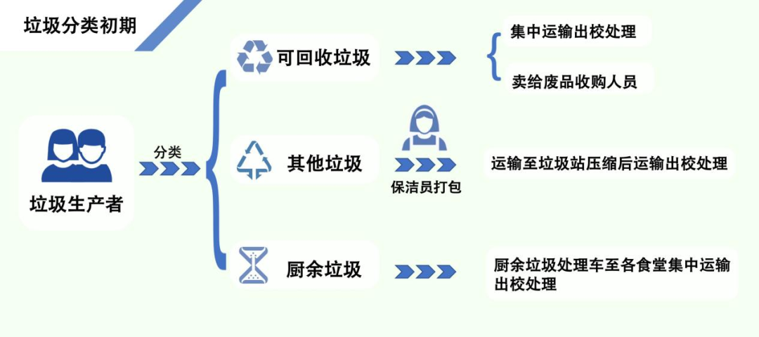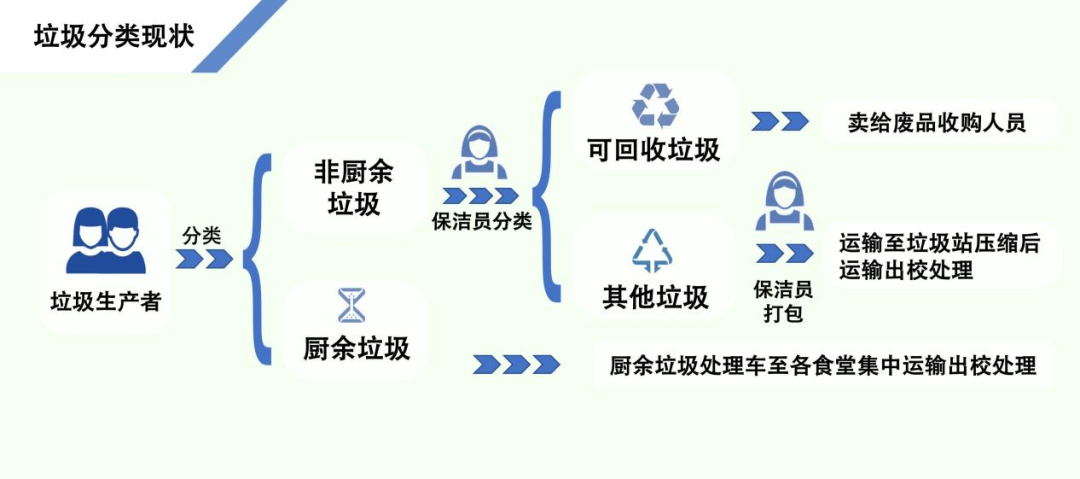 宿舍樓棟內(nèi)的垃圾分類方式已發(fā)生變化,保潔員的工作從打包延展至分類,他們需對學(xué)生投放的垃圾再次開包分揀。3棟的代同學(xué)并不知曉垃圾分類方式的變化,他以為是宿舍的客觀條件限制加上部分學(xué)生分類意識較差的主觀原因,共同自下而上地導(dǎo)致了“二次分類”。2棟的劉同學(xué)表示,看到宿舍保潔員還要將自己已經(jīng)分好類的垃圾再分揀一遍,十分疑惑。