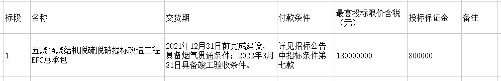 包鋼五燒1#燒結(jié)機(jī)脫硫脫硝提標(biāo)改造工程EPC總承包項(xiàng)目招標(biāo),內(nèi)容如下,明細(xì)詳見公告附表