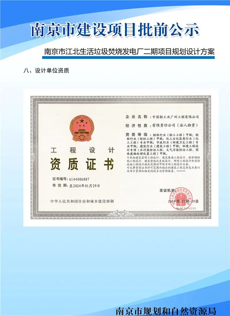 該項(xiàng)目的建設(shè)單位為南京江北環(huán)保電力有限公司,設(shè)計(jì)單位為中國輕工業(yè)廣州工程有限公司。