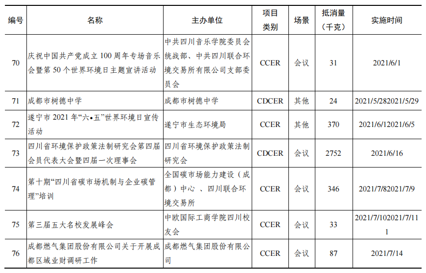 《研究報(bào)告》顯示,截至2021年7月底,全省累計(jì)實(shí)施社會(huì)活動(dòng)碳中和98場(次),參與人數(shù)超過8621人次,抵消溫室氣體排放4828.9噸二氧化碳當(dāng)量,相當(dāng)于100萬人停駛一天小汽車產(chǎn)生的二氧化碳排放。其中,依托四川聯(lián)合環(huán)境交易所“點(diǎn)點(diǎn)”碳中和公益服務(wù)平臺(tái)線上實(shí)施96場次,成為碳中和的主流方式。碳中和場景也十分多樣,不斷涌現(xiàn)會(huì)議、展覽、大數(shù)據(jù)中心、園區(qū)、景區(qū)、音樂會(huì)、婚禮等碳中和場景,雅安大數(shù)據(jù)產(chǎn)業(yè)園建成全國首個(gè)碳中和國家綠色數(shù)據(jù)中心,青城山—都江堰風(fēng)景名勝區(qū)成為國內(nèi)首個(gè)碳中和景區(qū)。抵消的產(chǎn)品除了國家核證自愿減排量,還有“碳惠天府”核證減排量和林業(yè)碳匯等本地化產(chǎn)品。