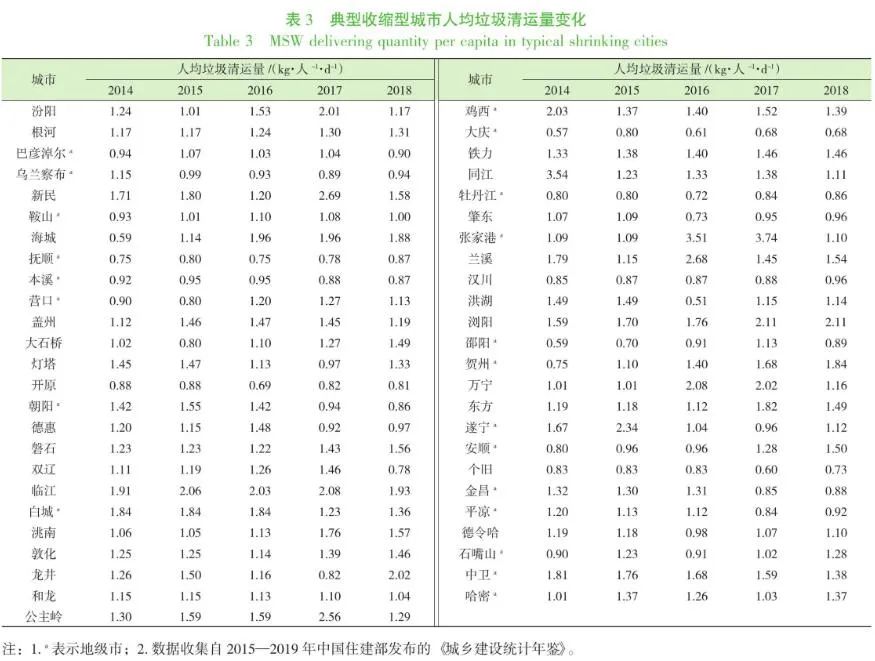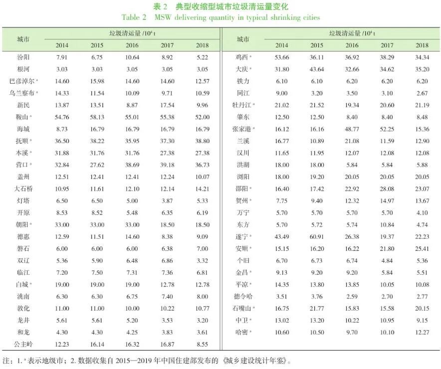 城市收縮是我國城鎮(zhèn)化發(fā)展面臨的重大趨勢,這一趨勢也會(huì)對生活垃圾的產(chǎn)生與處理產(chǎn)生重要影響。本研究首次對收縮型城市的生活垃圾管理問題進(jìn)行了分析,目前尚未有相關(guān)研究。