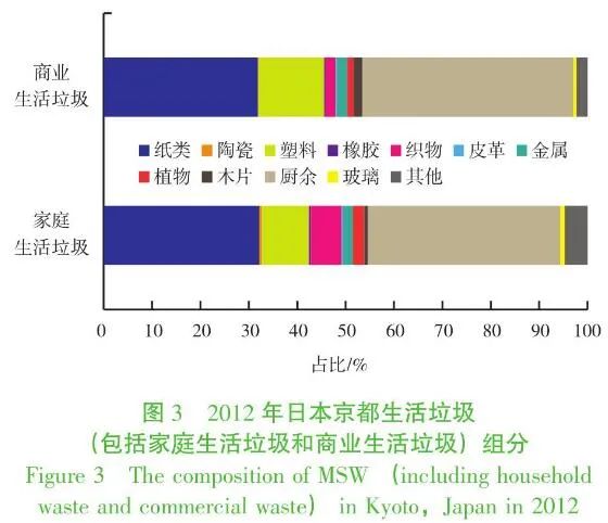 在垃圾組分上,通常經(jīng)濟(jì)越發(fā)達(dá),廚余垃圾在全部生活垃圾中的占比就越低,而可回收物占比就越高。例如,日本京都廚余垃圾占家庭垃圾的40%左右(圖3),而美國廚余垃圾占垃圾總量的21.6%,都明顯低于中國廚余垃圾的占比。這意味著,在中國的收縮型城市,隨著經(jīng)濟(jì)的發(fā)展、人口的逐漸減少和廚余垃圾占比的降低,總的廚余垃圾產(chǎn)生量也會(huì)有所下降。參考上海、深圳等城市的生活垃圾組分,到2030年,收縮型城市廚余垃圾在全部生活垃圾中的占比可以按40%~50%估計(jì)。