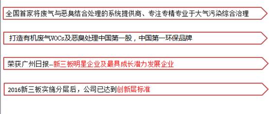 6月13日,紫科環(huán)保掛牌新三板。因為現(xiàn)在主板市場還沒有有機廢氣惡臭的公司,新三板是紫科的起步,紫科遠大的夢想是想走向更高的平臺。