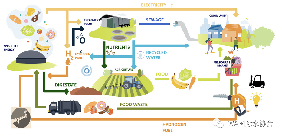 第二個例子是墨爾本的亞拉河谷水務(wù)公司(Yarra Valley Water)。他們成功召集了一個團(tuán)隊在墨爾本北郊的Aurora污水廠開展一個制氫項目。該團(tuán)隊除了水務(wù)公司,還有希望實(shí)現(xiàn)碳減排的租戶、希望擴(kuò)大制氫設(shè)備規(guī)模的技術(shù)供應(yīng)商,以及尋求去碳化的供氣公司。項目的水源是污水廠多余的再生水,以及附近一個垃圾發(fā)電廠的剩余可再生能源。