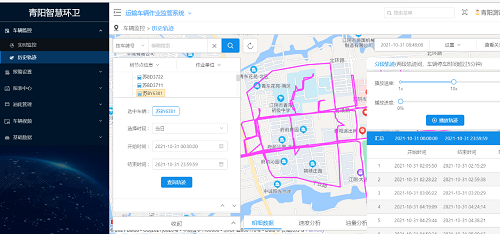 車輛內(nèi)部安裝有GPS定位系統(tǒng)和智能監(jiān)控?cái)z像頭,這些智能設(shè)備獲取的數(shù)據(jù)可以實(shí)時(shí)傳輸?shù)街腔郾O(jiān)管后臺(tái),每種垃圾收運(yùn)車只需要按照規(guī)定路線依次收運(yùn)即可,一旦車輛路線偏移、停留時(shí)間過(guò)長(zhǎng)等情況出現(xiàn),后臺(tái)即可實(shí)時(shí)監(jiān)測(cè)并靈活調(diào)度。