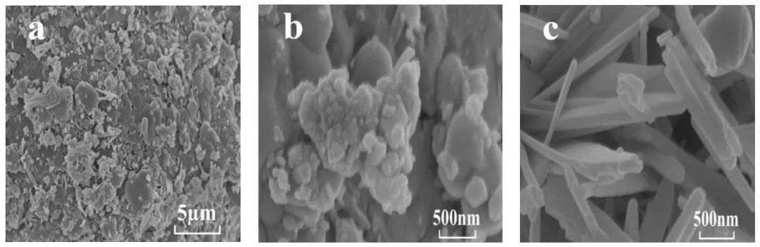 圖3 原始飛灰掃描電鏡圖譜(a: 10000倍;b-c: 60000倍)