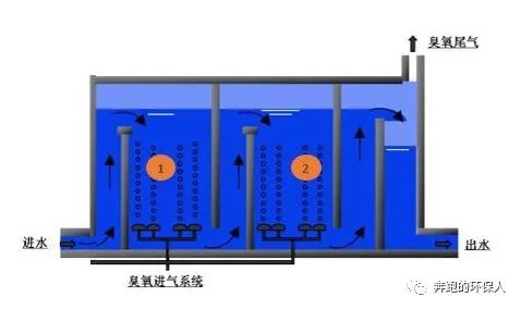 臭氧消毒單元共有32座臭氧接觸池,每條處理線4座。每個(gè)接觸池分兩個(gè)反應(yīng)室,第一個(gè)反應(yīng)室寬8m、長8m,有效水深6.25m;第二個(gè)反應(yīng)室寬8m、長5.3m,有效水深6.25m。
