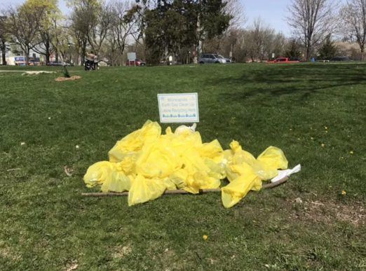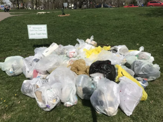 由于距離不遠(yuǎn),我們很快來(lái)到了公園門口,我們仔細(xì)地觀察了當(dāng)?shù)乩涞姆诸惽闆r,湊巧當(dāng)日為地球日,我們一行在公園門口遇到了志愿者收集的垃圾,并且分成了2堆擺放?;趪?yán)謹(jǐn)務(wù)實(shí)的工作作風(fēng)和對(duì)國(guó)內(nèi)崇洋媚外宣傳的不屑,我們持著懷疑地態(tài)度詳細(xì)驗(yàn)證了一下老美的分類是否真的做的那么完善,我們對(duì)2堆垃圾袋進(jìn)行了拍照取樣。