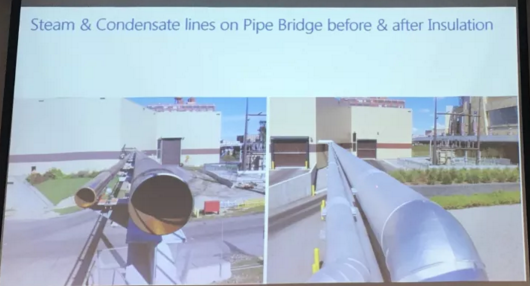 這座焚燒廠投運(yùn)于2014年,裝備精良,做工精湛,其采用了空冷島的設(shè)計(jì)(與我們山西大同項(xiàng)目很相似),尤其是彩瓦的材質(zhì)和施工質(zhì)量充分體現(xiàn)出了一個(gè)代表美國(guó)最新工藝水平的巔峰之作。對(duì)于彩瓦的材質(zhì)選擇和施工監(jiān)督,一直是我們所關(guān)注的重點(diǎn),對(duì)彩瓦應(yīng)當(dāng)嚴(yán)格要求采用連續(xù)瓦楞并確保足夠的厚度,才能體現(xiàn)出一個(gè)項(xiàng)目的質(zhì)感和品質(zhì),這也是我本人最關(guān)注的環(huán)節(jié)。