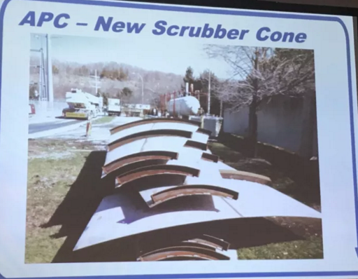 另一位是我們上次去美國(guó)參觀的一座焚燒廠的技術(shù)人員介紹了他們的一次最新的維修。這是Covanta旗下的美國(guó)紐約州的Onondago焚燒廠,由于我們是從事煙氣凈化系統(tǒng)的,我重點(diǎn)聽(tīng)了一下他們煙氣區(qū)域的技改。這個(gè)廠在我上次去的時(shí)候,的確略顯破敗,已經(jīng)持續(xù)運(yùn)行了20來(lái)年了。說(shuō)是技改,其實(shí)主要是對(duì)出渣系統(tǒng)、膨脹節(jié)、吸收塔錐體、除塵器灰斗、SNCR、DCS和CEMS的更新。看到這里,中國(guó)的土豪們是不是覺(jué)得老美好土,這么晚才上SNCR。