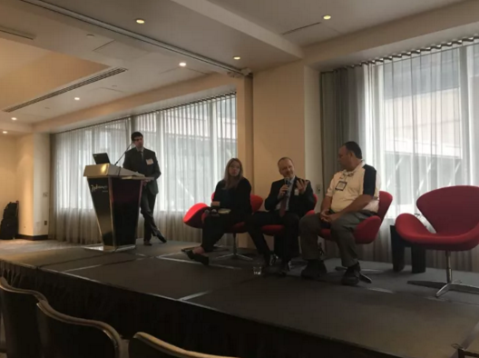 老美的會(huì)議形式我覺(jué)得比國(guó)內(nèi)的會(huì)議形式略有不同。通常一個(gè)議題由一位大咖發(fā)言,同時(shí)會(huì)有3-4位大咖就坐一邊,等發(fā)言的大咖結(jié)束后,會(huì)共同探討這個(gè)話題,坐在一邊的大咖發(fā)言較為簡(jiǎn)短,他們也會(huì)一起回復(fù)在座聽(tīng)眾提出的問(wèn)題。這種形式下,我認(rèn)為其交互性更強(qiáng)一些,而分享的觀點(diǎn)也會(huì)持不同的見(jiàn)解,會(huì)帶給聽(tīng)眾更多角度的思考。
