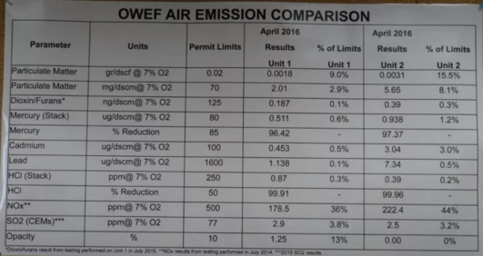 會(huì)議之后,我們開(kāi)始陸續(xù)走訪工廠,第一個(gè)是美國(guó)明尼阿波利斯—Olmsted焚燒廠,該廠為2x100t/d+1x200t/d的規(guī)模,煙氣工藝采用的是固定噴霧法+布袋除塵器。全廠排放情況尚可,具體如下: