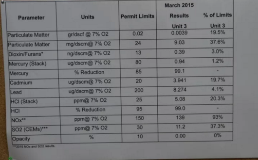 所以,如果Hennepin的焚燒廠仍然遵從老標(biāo)準(zhǔn)的話,從上圖的排放水平來(lái)看,其HCL排放是極其糟糕的。即SO2為77ppm(220mg/Nm3),HCL為250ppm(407mg/Nm3),按上圖的排放水準(zhǔn),SO2應(yīng)該在:17.16mg/Nm3,HCL應(yīng)該在:223.85mg/Nm3。