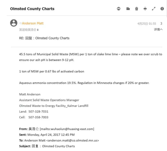 參觀的同時(shí),我們交流了一下大致的排放指標(biāo),由于時(shí)間久了具體排放限值數(shù)據(jù)記不清了,但印象中其排放指標(biāo)一般,甚至高于國(guó)內(nèi)現(xiàn)行的18485標(biāo)準(zhǔn)?;貒?guó)后我查閱了相關(guān)資料,發(fā)現(xiàn)明尼阿波利斯的地方標(biāo)準(zhǔn)有所提高。其依據(jù)是我查閱了一個(gè)Olmsted焚燒廠3號(hào)線的環(huán)評(píng)報(bào)告,并注意到Olmsted的1.2號(hào)線的排放標(biāo)準(zhǔn)明顯寬于3號(hào)線的排放標(biāo)準(zhǔn),有興趣的同志可以往上翻幾頁(yè)看看Olmsted廠的排放標(biāo)準(zhǔn)。