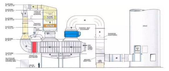 該廠主要燃料為城市生活垃圾,輔助燃料為天然氣。95MW的裝機(jī)容量,可供應(yīng)55000個(gè)家庭。單臺(tái)鍋爐供熱能力為:284,400 lb/h。我們關(guān)注的煙氣區(qū)域分為2個(gè)部分,SDA+SCR。