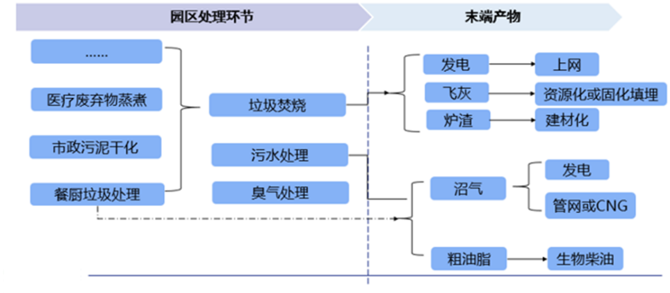 不同處理工藝環(huán)節(jié)及末端產(chǎn)物資源化利用