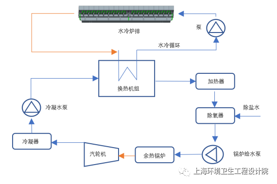 水冷爐排系統(tǒng)熱量也可以進入鍋爐循環(huán)水系統(tǒng)用于驅動汽輪機組詳見附圖7,從而實現(xiàn)熱量循環(huán)利用??傮w而言,水冷系統(tǒng)能夠帶走熱負荷2-3%,降低系統(tǒng)熱損失,增加焚燒廠發(fā)電量。