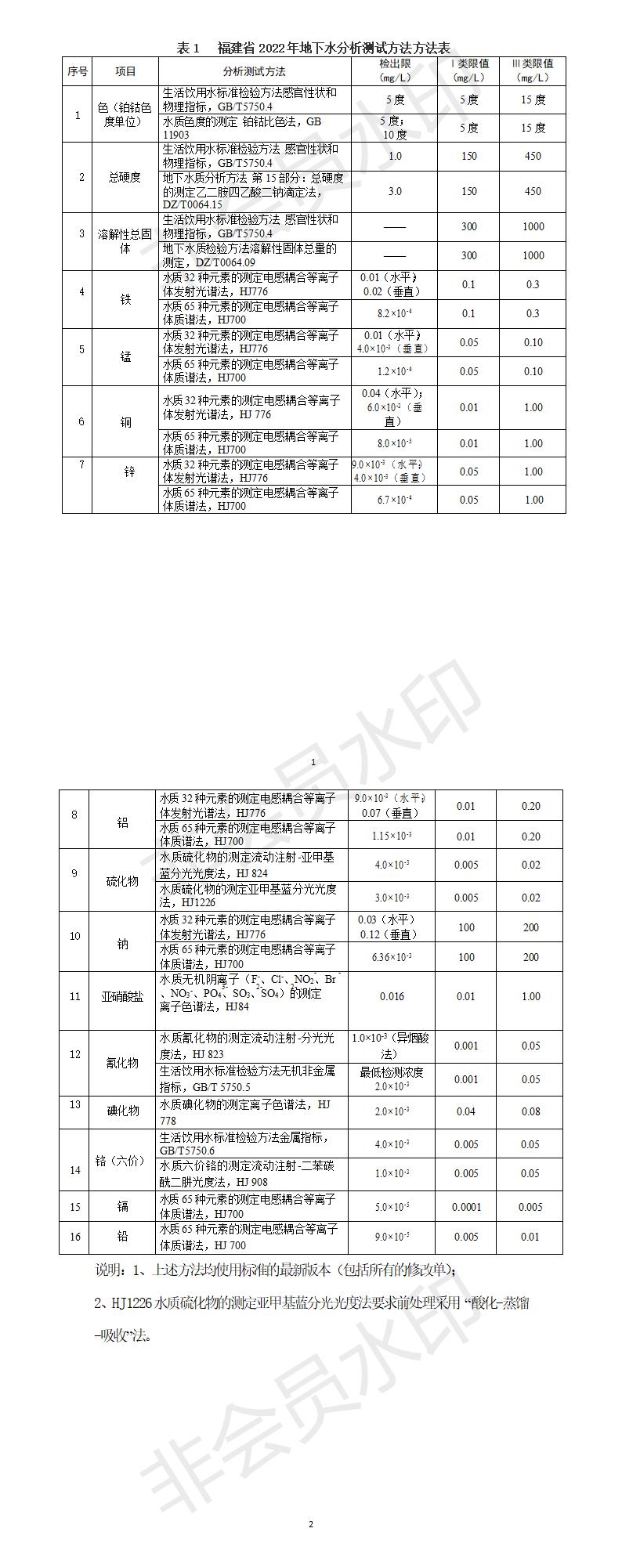 1.鋁、硫化物、碘化物、鉻(六價(jià))、鐵、錳、銅、鋅、鈉、亞硝酸鹽、氰化物、鎘、鉛、色、總硬度、溶解性總固體