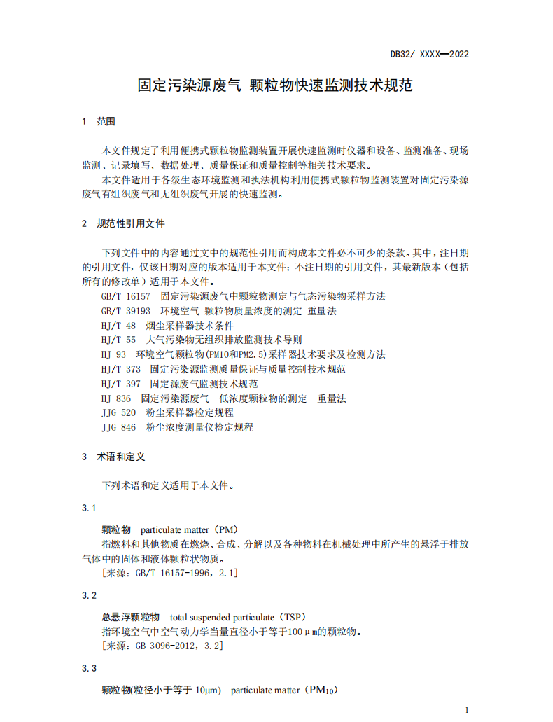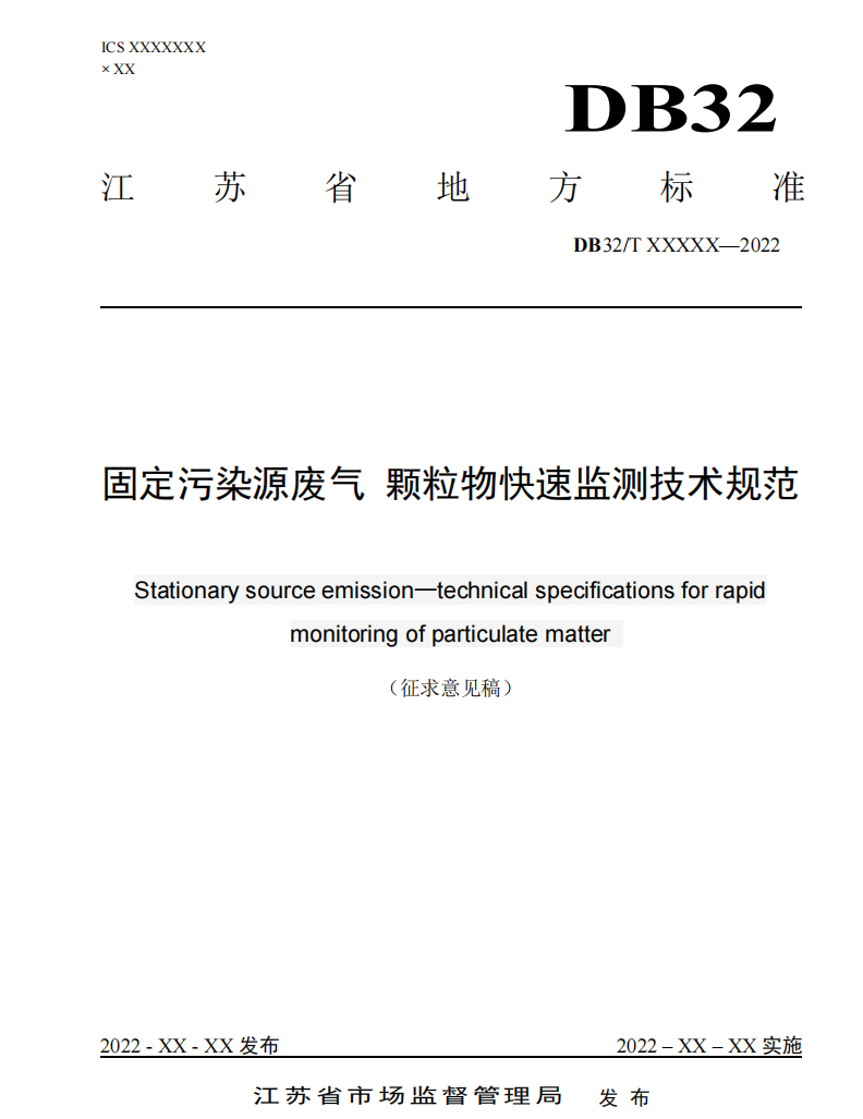 為貫徹《中華人民共和國環(huán)境保護法》《中華人民共和國大氣污染防治法》《江蘇省大氣污染防治條例》等法律法規(guī),進一步規(guī)范江蘇省顆粒物快速監(jiān)測技術要求,提升大氣污染管控成效,江蘇省生態(tài)環(huán)境廳組織起草了江蘇省地方環(huán)境保護標準《固定污染源廢氣 顆粒物快速監(jiān)測技術規(guī)范(征求意見稿)》,并于近日向相關單位征求意見。