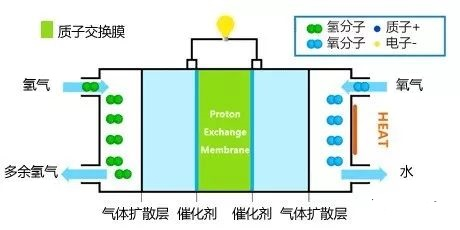 質(zhì)子交換膜燃料電池(Proton Exchange Membrane Fuel Cell,PEMFC),由陽(yáng)極、陰極和質(zhì)子交換膜組成,是用質(zhì)子交換膜作為電解質(zhì)的燃料電池,將外部供應(yīng)的燃料(氫氣)和空氣中的氧化劑(氧氣)的化學(xué)能通過(guò)電化學(xué)反應(yīng)直接轉(zhuǎn)化為電能、熱能和其他反應(yīng)產(chǎn)物的發(fā)電裝置。