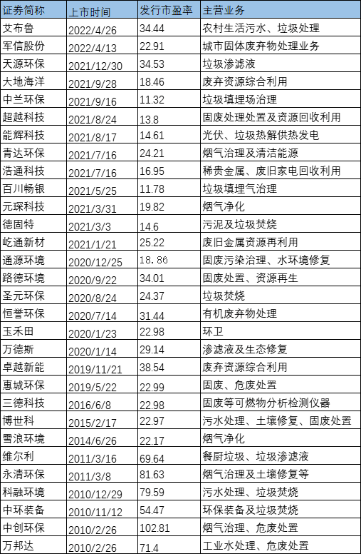 四領(lǐng)域發(fā)行市盈率比較 固廢企業(yè)被資本持續(xù)看好