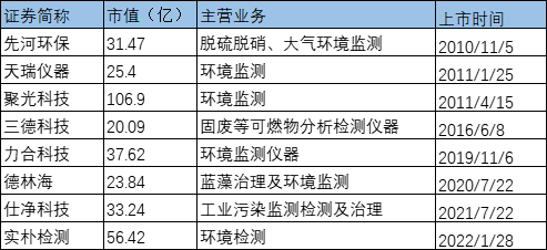 其中主要涉及環(huán)境監(jiān)測(cè)檢測(cè)業(yè)務(wù)的企業(yè)有8家,平均發(fā)行市盈率約為43.4,整體上高于固廢企業(yè)和水務(wù)企業(yè)。2019年之后上市企業(yè)4家,平均發(fā)行市盈率為26.3。