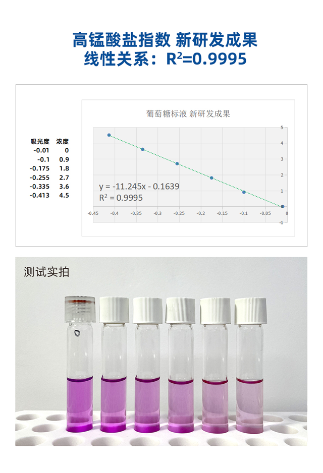 找到問題的關鍵所在,我們對高錳酸鹽指數(shù)試劑又開啟了新一輪研發(fā)。最終結果如下: