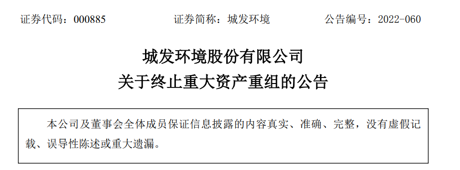 據(jù)公告顯示,終止本次重大資產(chǎn)重組的原因是城發(fā)環(huán)境自籌劃本次重大資產(chǎn)重組事項(xiàng)以來(lái),嚴(yán)格按照相關(guān)法律法規(guī)的要求,與交易對(duì)方及其他相關(guān)雙方持續(xù)進(jìn)行磋商與研討,并根據(jù)磋商結(jié)果積極推進(jìn)相關(guān)盡職調(diào)查、審計(jì)、信息披露、內(nèi)部決策等工作。鑒于本次重大重組方案論證歷時(shí)較長(zhǎng),相關(guān)市場(chǎng)環(huán)境較本次交易籌劃之初發(fā)生較大變化。經(jīng)審慎研究分析,為切實(shí)維護(hù)城發(fā)環(huán)境及全體股東利益,經(jīng)與啟迪環(huán)境協(xié)商,雙方?jīng)Q定終止本次重大資產(chǎn)重組事項(xiàng)。根據(jù)法律法規(guī)及公司章程規(guī)定,經(jīng)雙方充分溝通及友好協(xié)商,城發(fā)環(huán)境董事會(huì)經(jīng)審慎研究后,依法履行了相關(guān)審議程序,終止本次重大資產(chǎn)重組。同時(shí),另一則公告顯示,城發(fā)環(huán)境與啟迪環(huán)境簽署的戰(zhàn)略框架性協(xié)議。合作內(nèi)容、合作機(jī)制與合作期限等事項(xiàng)的具體實(shí)施尚存在不確定性,具體的項(xiàng)目合作協(xié)議或項(xiàng)目開(kāi)展方案尚需雙方進(jìn)一步協(xié)商確定。公告顯示,基于城發(fā)環(huán)境在環(huán)保項(xiàng)目建設(shè)、區(qū)域市場(chǎng)拓展、環(huán)保技術(shù)研發(fā)及人員交流等方面與啟迪環(huán)境已經(jīng)開(kāi)展了深入、全面的合作,具備良好的合作基礎(chǔ),為延續(xù)雙方友好合作關(guān)系、充分發(fā)揮雙方在環(huán)保、能源領(lǐng)域的發(fā)展優(yōu)勢(shì),公司與啟迪環(huán)境共同簽署了《全面戰(zhàn)略合作協(xié)議》,以進(jìn)一步推動(dòng)雙方交流合作。
