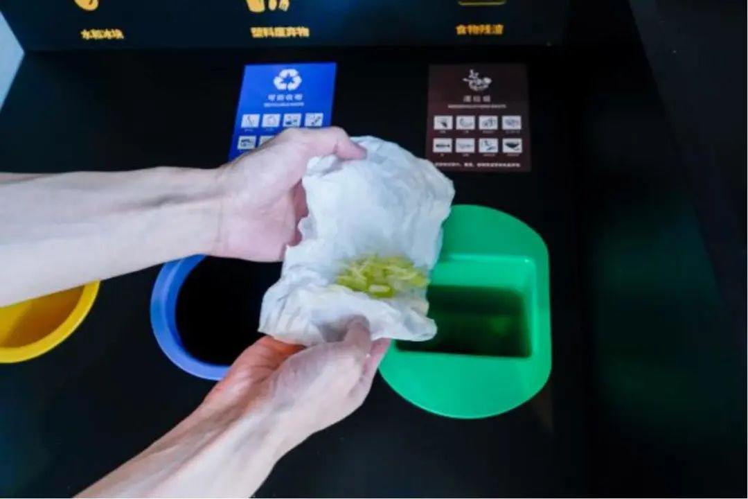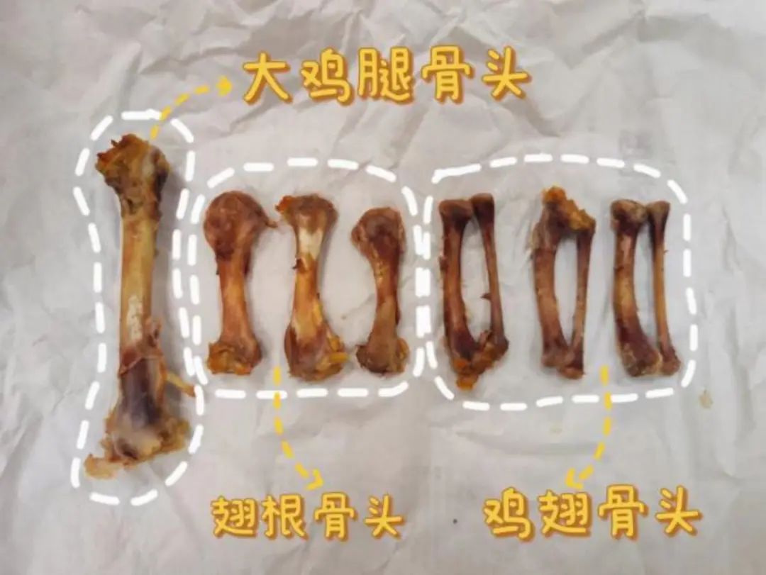 吃完了的:雞骨頭——扔進濕垃圾;包裝紙——扔進干垃圾桶