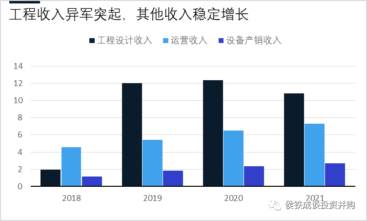 我們看到公司上市后收入利潤有個大的波動,2018年上市后,2019業(yè)績爆發(fā)增長。我們把業(yè)務拆分后,公司的成長一目了然,2019年主要是工程收入大幅上漲,帶動公司的業(yè)務收入迅速上升到20億以上。運營和設備收入,則穩(wěn)定增長。