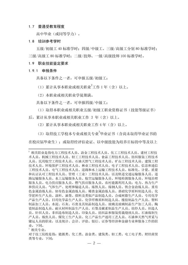 其中碳排放監(jiān)測員、碳排放核算員、碳排放核查員、碳排放交易員、民航碳排放管理員等五個工種共設五個等級,分別為:五級/初級工、四級/中級工、三級/高級工、二級/技師、一級/高級技師。其中,五級/初級工不分工種,統(tǒng)稱碳排放管理員五級/初級工。碳排放咨詢員共設三個等級,分別為:三級/高級工、二級/技師、一級/高級技師。五級/初級工40標準學時;四級/中級工、三級/高級工分別80標準學時;三級/高級工80標準學時;二級/技師、一級/高級技師100標準學時。