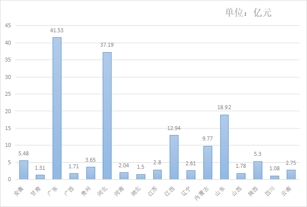 2、山東迎來(lái)小高潮,廣東、河北繼續(xù)領(lǐng)跑!8月,安徽、甘肅、廣東、廣西、貴州、河北、河南、湖北、江蘇、江西、遼寧、內(nèi)蒙古、山東、山西、陜西、四川和云南17個(gè)省份都有億級(jí)環(huán)衛(wèi)項(xiàng)目開(kāi)標(biāo)。項(xiàng)目數(shù)量上,河北(6)、廣東(5)、山東(4)分列前三位;項(xiàng)目金額上,仍是廣東、河北和山東排在前列,金額分別為41.53億元、37.19億元和18.92億元。