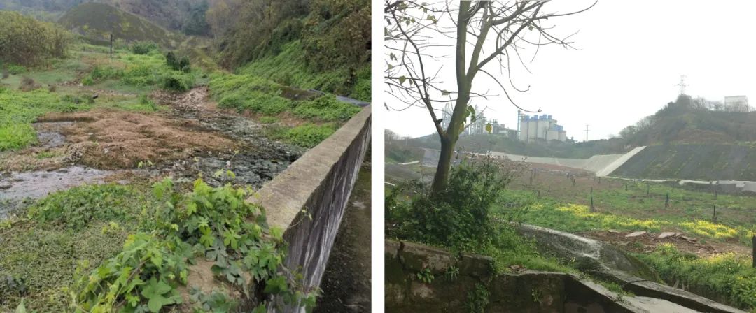 ▲圖1 生活垃圾填埋場(chǎng)分區(qū)改造建設(shè)流程上述流程中,需要說(shuō)明的有以下幾點(diǎn):現(xiàn)狀調(diào)查和勘察是首要步驟。現(xiàn)狀調(diào)查和勘察可以厘清填埋場(chǎng)現(xiàn)狀污染和現(xiàn)狀設(shè)施情況,同時(shí)為堆體的穩(wěn)定安全性及改造方案提供依據(jù)。根據(jù)現(xiàn)有垃圾填埋情況,填埋場(chǎng)整治方案分為原位治理和異地處置兩種,異地處置一般適用于已填垃圾量較少的情況,對(duì)于垃圾填埋量較大的填埋場(chǎng),通常選用原位治理方案。分區(qū)方案大致可以分為水平分區(qū)和垂直分區(qū)兩種,顧名思義,水平分區(qū)就是固化/穩(wěn)定化飛灰填埋區(qū)和生活垃圾填埋區(qū)為水平方向上的兩個(gè)獨(dú)立庫(kù)區(qū),垂直分區(qū)就是在現(xiàn)有生活垃圾堆體之上構(gòu)建獨(dú)立的固化/穩(wěn)定化飛灰填埋區(qū)。水平分區(qū)適用于原生活垃圾填埋場(chǎng)有未填埋垃圾的區(qū)域或填埋深度較淺通過(guò)垃圾清理可以獲得水平向的獨(dú)立庫(kù)區(qū),對(duì)于垃圾填埋量較大、填埋深度較深的填埋場(chǎng),采用垂直分區(qū)方案更經(jīng)濟(jì)可行。水平分區(qū)方案建設(shè)內(nèi)容主要包括新建分區(qū)壩、構(gòu)建飛灰獨(dú)立庫(kù)區(qū)的雙層防滲系統(tǒng)、飛灰滲瀝液導(dǎo)排及處理系統(tǒng);垂直分區(qū)方案則更為復(fù)雜,在現(xiàn)有生活垃圾堆體之上構(gòu)建垂直的飛灰獨(dú)立庫(kù)區(qū),還需要考慮現(xiàn)有生活垃圾堆體沉降、填埋氣導(dǎo)排堵塞、生活垃圾堆體液位高等影響飛灰堆體穩(wěn)定安全的一系列問題,并給出解決方案。飛灰滲瀝液的水質(zhì)特點(diǎn)與生活垃圾滲瀝液完全不同,這與飛灰的形成和螯合固化工藝有關(guān),具體表現(xiàn)為:1)Cl-含量極高;2)Ca2+ 含量較高;3)鉛等重金屬含量偏高;4)COD和NH3-N等指標(biāo)偏低,若煙氣處理或飛灰螯合固化過(guò)程中采用滲瀝液處理的濃縮液,則會(huì)導(dǎo)致COD和NH3-N升高。以上特點(diǎn)導(dǎo)致常見的生化技術(shù)和膜分離技術(shù)都無(wú)法正常運(yùn)行,而采用簡(jiǎn)單的氧化還原處理工藝則難以達(dá)到排放標(biāo)準(zhǔn),故目前飛灰滲瀝液的處理思路通常為:采用晴天作業(yè)雨天不作業(yè)、加強(qiáng)雨污分流覆蓋等方式將飛灰滲瀝液產(chǎn)量控制到最低,若產(chǎn)生少量的飛灰滲瀝液,則輸送至就近的生活垃圾滲瀝液處理站協(xié)同處理。工程建設(shè)和運(yùn)營(yíng)建議。1)工程施工:建議避開雨季,若在雨季施工,盡量減少垃圾裸露面積,以控制臭氣和滲瀝液量;為避免施工裸露或施工碾壓將生活垃圾堆體積存的滲瀝液排出等施工期間滲瀝液大增的情況,建議提前做好預(yù)案。2)運(yùn)營(yíng)管理:建議做好雨污分流,控制飛灰滲瀝液的產(chǎn)量;若采用垂直分區(qū),建議按規(guī)范要求重點(diǎn)監(jiān)測(cè)垃圾堆體沉降、位移等填埋場(chǎng)安全運(yùn)行的相關(guān)指標(biāo)。西南地區(qū)某山谷型生活垃圾填埋場(chǎng),設(shè)計(jì)庫(kù)容約244萬(wàn)m3,改造時(shí)已填埋生活垃圾約130多萬(wàn)m3,剩余庫(kù)容約110萬(wàn)m3,垃圾填埋深度在20m左右。通過(guò)現(xiàn)狀調(diào)查發(fā)現(xiàn)該填埋場(chǎng)填埋了大量市政污泥、滲瀝液導(dǎo)排系統(tǒng)已堵塞、填埋氣導(dǎo)排系統(tǒng)效果不好、垃圾堆體中滲瀝液液位高、壩前形成了污泥坑,因此,給項(xiàng)目的實(shí)施帶來(lái)了嚴(yán)峻的挑戰(zhàn)。改造前現(xiàn)場(chǎng)情況見圖2。