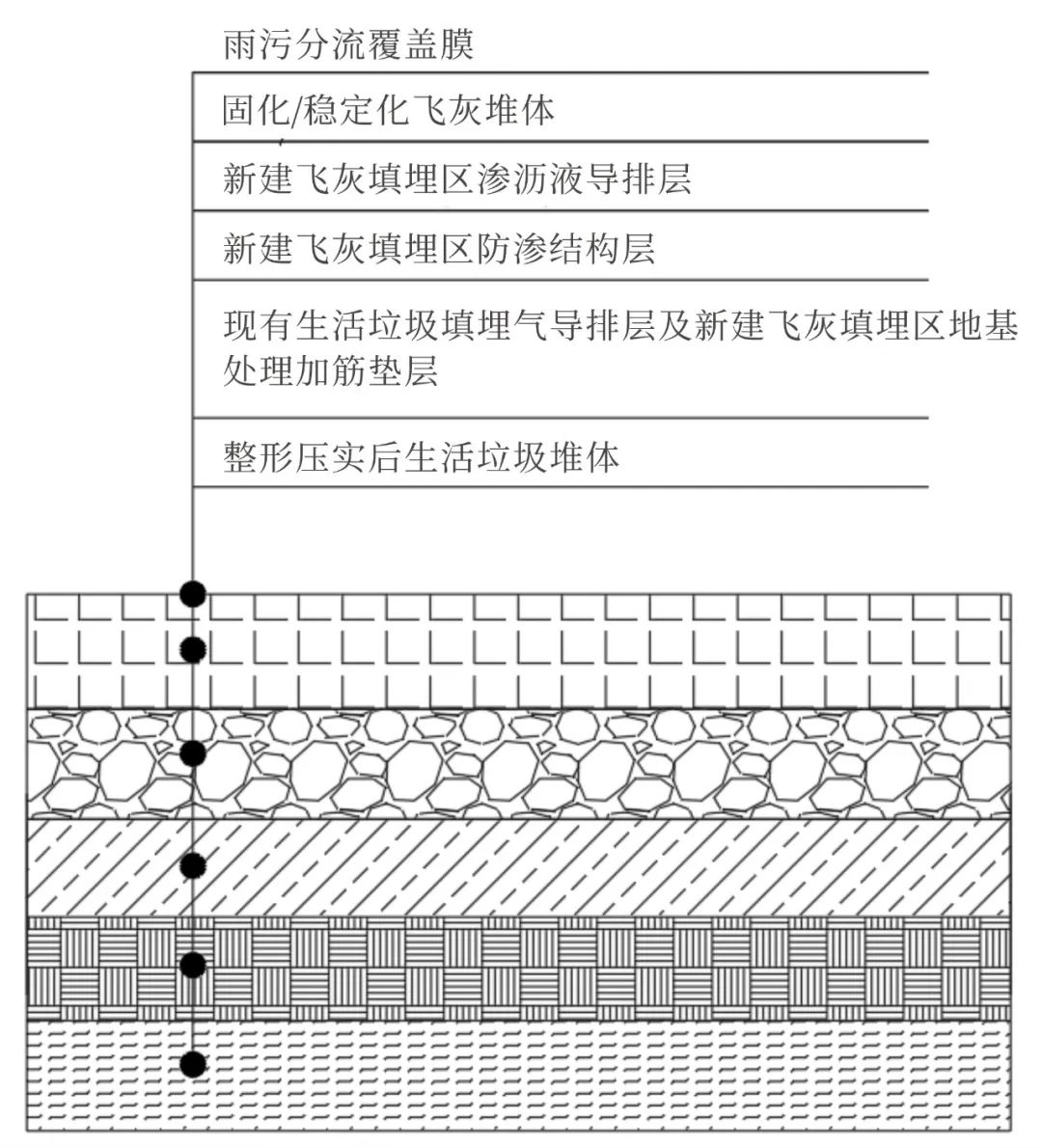 ▲圖2 生活垃圾填埋場(chǎng)改造前現(xiàn)場(chǎng)情況根據(jù)《生活垃圾填埋場(chǎng)污染控制標(biāo)準(zhǔn)》(GB 16889-2008)等相關(guān)標(biāo)準(zhǔn)要求,經(jīng)處理合格滿足入場(chǎng)條件的生活垃圾焚燒飛灰在生活垃圾填埋場(chǎng)中應(yīng)單獨(dú)分區(qū)填埋。固化/穩(wěn)定化飛灰當(dāng)長(zhǎng)期在生活垃圾產(chǎn)生的酸性滲瀝液浸泡下具有滲出有害物質(zhì)的潛在風(fēng)險(xiǎn),故要求分區(qū)填埋。通過(guò)方案比選,異地處置和水平分區(qū)由于需要大規(guī)模的開挖、臭氣等環(huán)境影響更大、工程建設(shè)周期長(zhǎng)、投資較高等較難實(shí)施,故本項(xiàng)目確定采用原位治理的垂直分區(qū)方案。固化/穩(wěn)定化飛灰與生活垃圾性質(zhì)完全不同,其密度大于生活垃圾,此外,生活垃圾堆體通常會(huì)隨著時(shí)間的推移發(fā)生沉降,并繼續(xù)產(chǎn)生填埋氣和滲瀝液,因此,如何確保固化/穩(wěn)定化飛灰入場(chǎng)填埋后填埋場(chǎng)的穩(wěn)定安全,是本項(xiàng)目擬解決的關(guān)鍵問題。