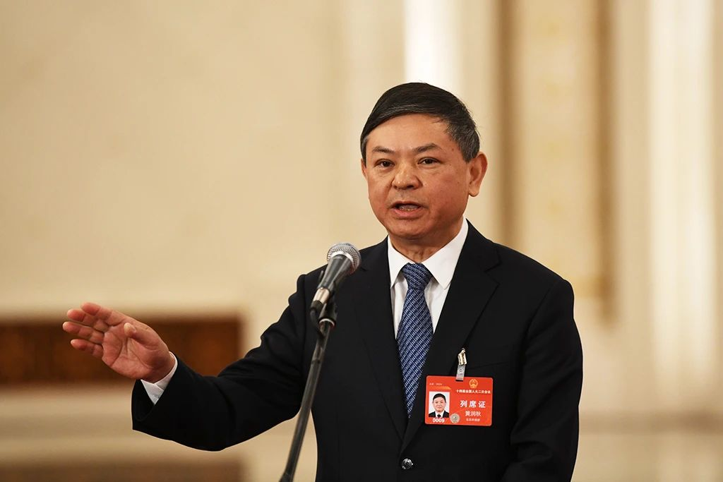 3月8日,第十四屆全國人民代表大會第二次會議第二場“部長通道”集中采訪活動在北京人民大會堂舉行。生態(tài)環(huán)境部部長黃潤秋走上“部長通道”,并回答媒體記者提問。▼生態(tài)環(huán)境部部長黃潤秋接受采訪。圖片來源:人民網(wǎng)