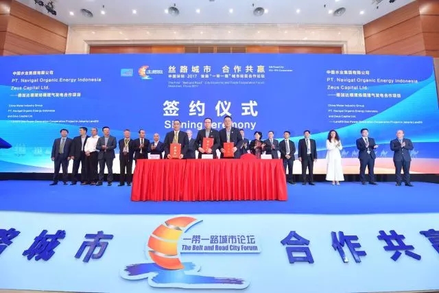 中國水業(yè)集團(tuán)董事局主席鄧俊杰、執(zhí)行董事兼行政總裁林岳輝等高管一行受邀出席,并在本次論壇上簽署二份協(xié)議,其一是“中國水業(yè)集團(tuán)有限公司、深圳市‘一帶一路’經(jīng)貿(mào)戰(zhàn)略研究院、中鐵北京工程局集團(tuán)有限公司——關(guān)于加強‘一帶一路’沿線城市重大項目合作的框架協(xié)議”;其二是“中國水業(yè)集團(tuán)有限公司與NOEI(PT.Navigat Organic Energy Indonesia)和Zeus Capital 就印尼雅加達(dá)生活垃圾無害化、減量化、資源化及沼氣利用項目簽署合作協(xié)議”。此次合作充分發(fā)揮了各方優(yōu)勢,實現(xiàn)了互利共贏、共同發(fā)展的一致目標(biāo)。