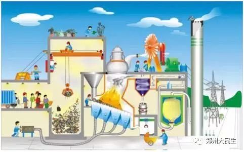 垃圾在鍋里里經過燃燒,將鍋爐里的水轉換為水蒸氣。