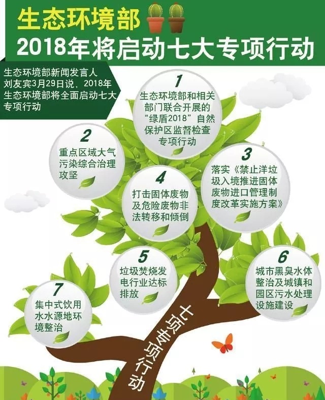 3月29日,生態(tài)環(huán)境部舉行了成立后的首場例行新聞發(fā)布會。新聞發(fā)言人劉友賓表示,中央環(huán)保督查工作將繼續(xù)推進深化,再用三年左右時間完成第二輪中央環(huán)保督查全覆蓋。全面啟動七大專項行動,作為打好“污染防治攻堅戰(zhàn)”的標志性工程。
