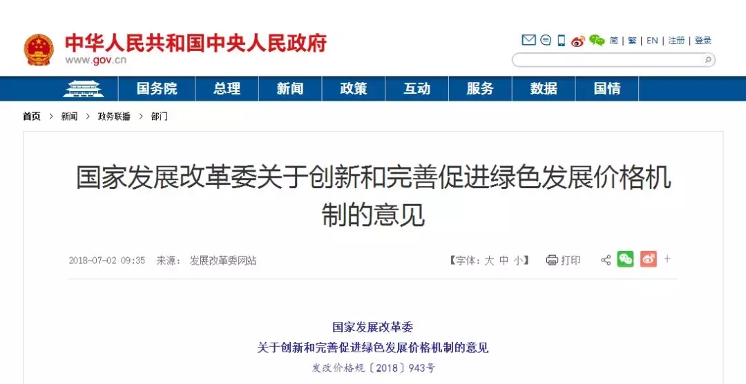 關(guān)于創(chuàng)新和完善促進(jìn)綠色發(fā)展價(jià)格機(jī)制的意見
